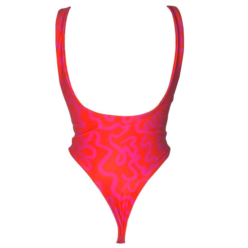 This 80's style print and cut will have you begging for more! high cut, so it sits above your hips with a cheeky g-string like cut on the bottom, flattering for everyone!